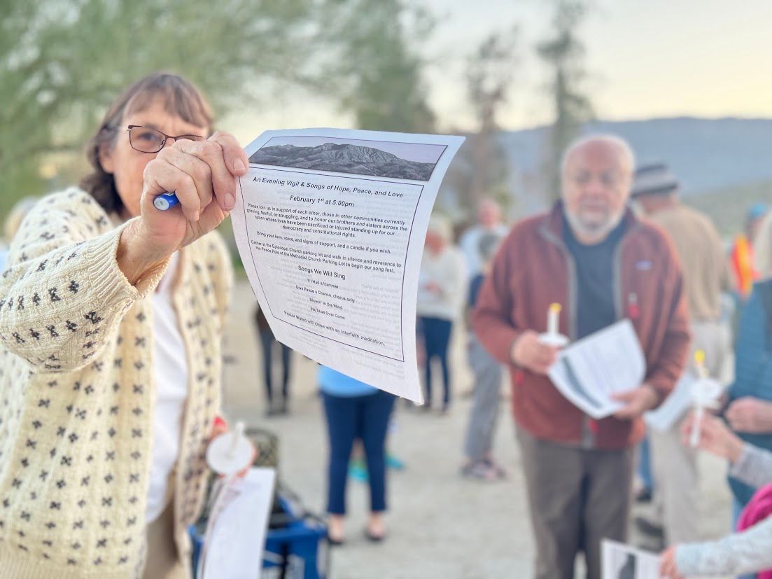 On Sunday evening, February 1, a community vigil and walk with songs of hope, peace, and love was held in Borrego Springs.