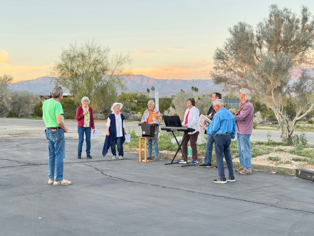 Coming Together in Gratitude Pastor Mateo Mamea opened the service with a call to give thanks, followed by an opening prayer from Rev. Michael Plekon. Their welcome set the tone for a meaningful evening of reflection. Readings, Music, and Reflections Scripture readings were shared by Cmdr. Dale Jones and Rev. David Madsen, with additional participation from Ellen Fitzpatrick and Diane Johnson . Pastor Mamea also offered the homily. Music added warmth to the service. Jennie and Gary Edwards performed “For the Beauty of the Earth,” and the combined choir, directed by Jinny Perrin , contributed a beautifully sung anthem. Voices From the Community Martha Deichler spoke about the Borrego Ministers Association, sharing its purpose, how it supports residents in crisis, and why its work is an important part of community life. Supporting Local Needs An offering was collected to support the year-round work of the Borrego Ministers Association, which provides emergency assistance for residents across Borrego Springs. A Shared Moment of Community The service ended with a final hymn and blessing, bringing together residents, visitors, and local faith leaders in a shared expression of gratitude and community spirit.